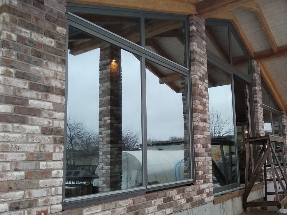 Дерево-алюминиевые окна для коттеджа и бассейна